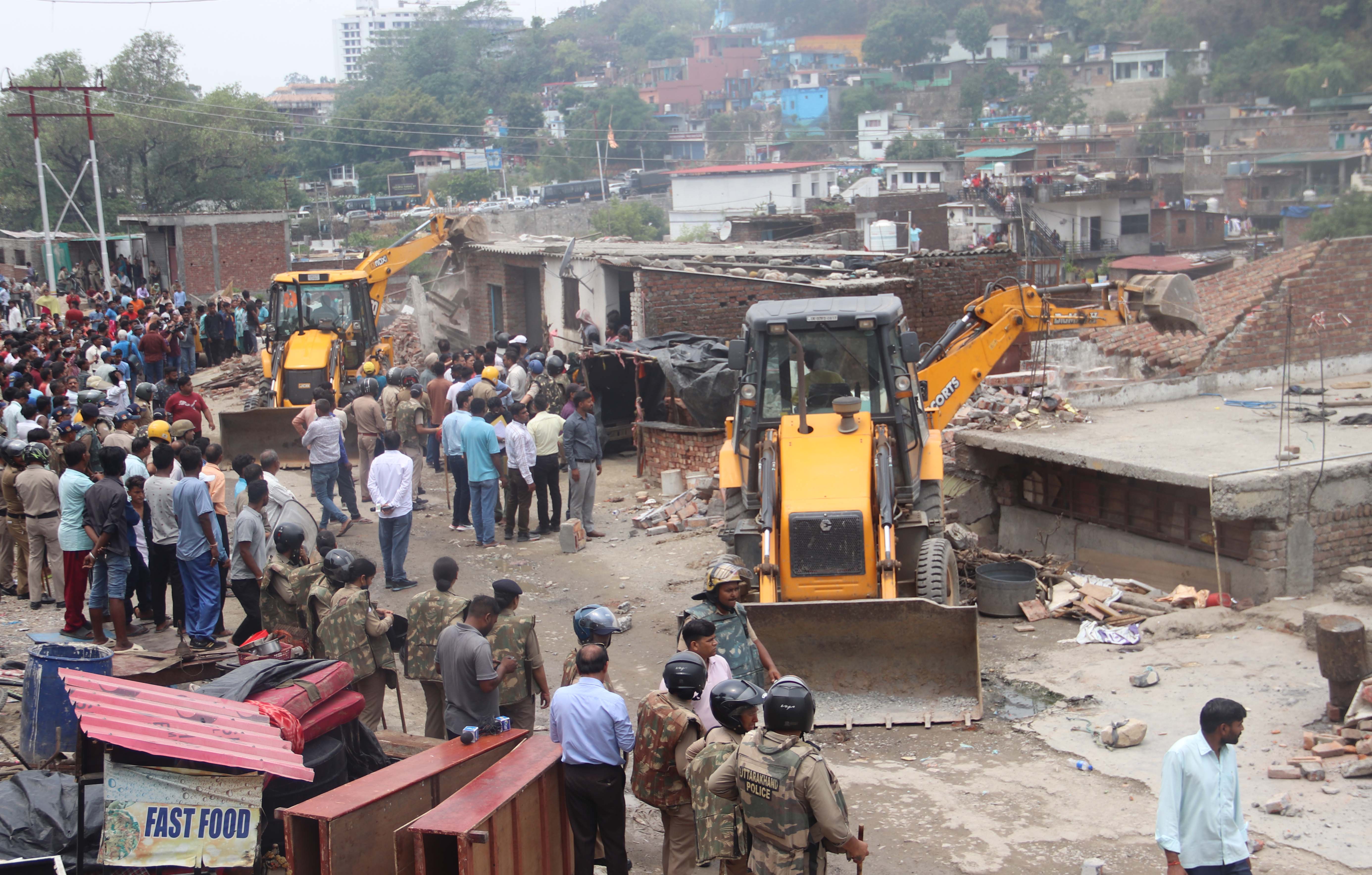 खाली हो चुके मकानों पर ध्वस्तीकरण की कार्रवाई शुरू की गई। तीन जेसीबी से मकान ध्वस्त किए गए और छोटे निर्माणों को तोड़ने के लिए श्रमिक भी लगाए गए। इस दौरान बड़ी संख्या में बस्तीवासी एकत्रित हो गए और उन्होंने कार्रवाई का विरोध करते हुए हंगामा किया। हालांकि, भारी पुलिस बल की मौजूदगी में ज्यादा देर विरोध नहीं हो सका। जाम लगाने वालों को पुलिस ने खदेड़ा और कार्रवाई चलती रही। पहले दिन 26 निर्माण ध्वस्त किए गए और शेष निर्माण पर आज कार्रवाई की जाएगी।